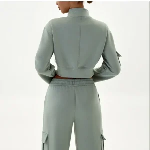 Women Fashion Casual Loose Long-Sleeve Zipper Jacket Pocket Drawstring Pants Sports Two-Piece Set